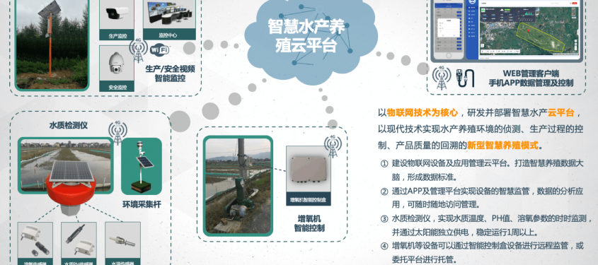 云平台实现池塘水质时时监管、增氧机/给排水设备自动控制、养殖环境数据汇总分析等,危情自动报警,减轻饲养环境现场的劳动量。